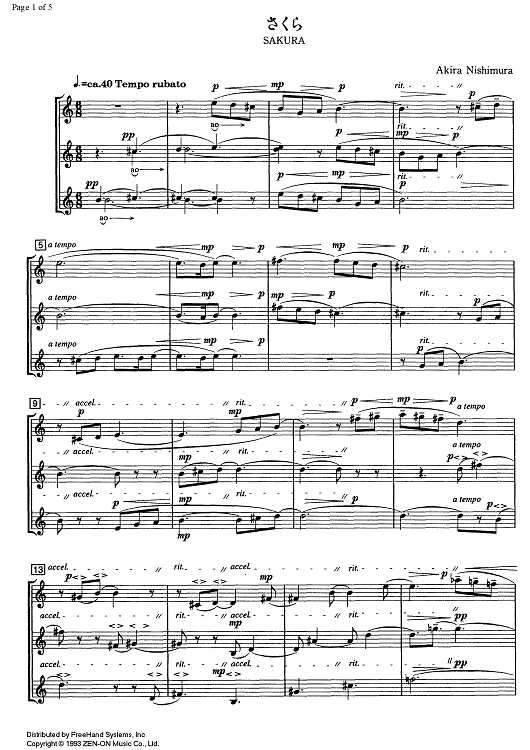Digital Sheet Music for Sakura by , Akira Nishimura scored for Female Chorus; id:337926