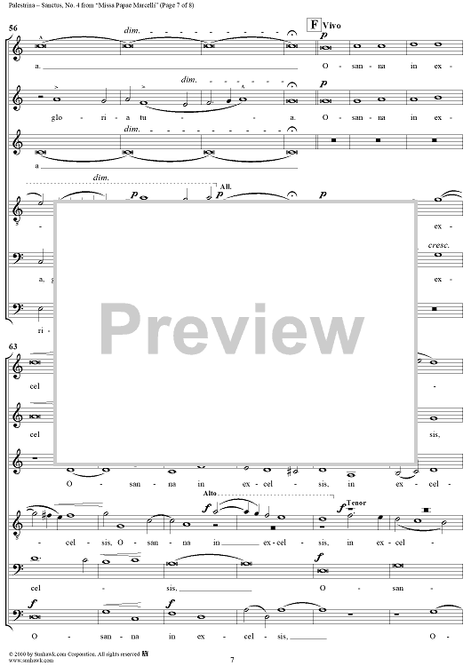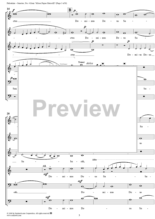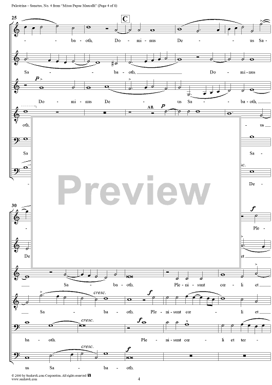 Digital Sheet Music for Sanctus - No. 4 from "Missa Papae Marcelli" by Giovanni Pierluigi da Palestrina scored for Mixed Chorus; id:254160