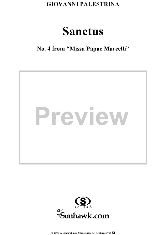 "Sanctus - No. 4 from "Missa Papae Marcelli"" Sheet Music by Giovanni Pierluigi da Palestrina
