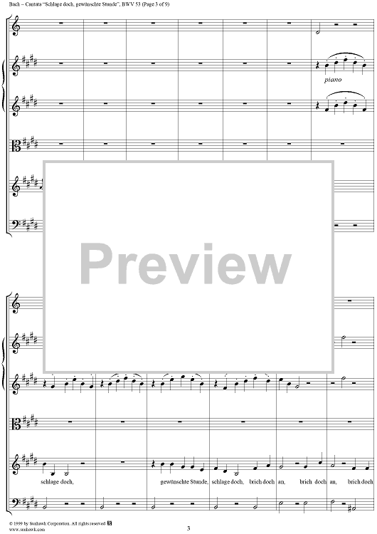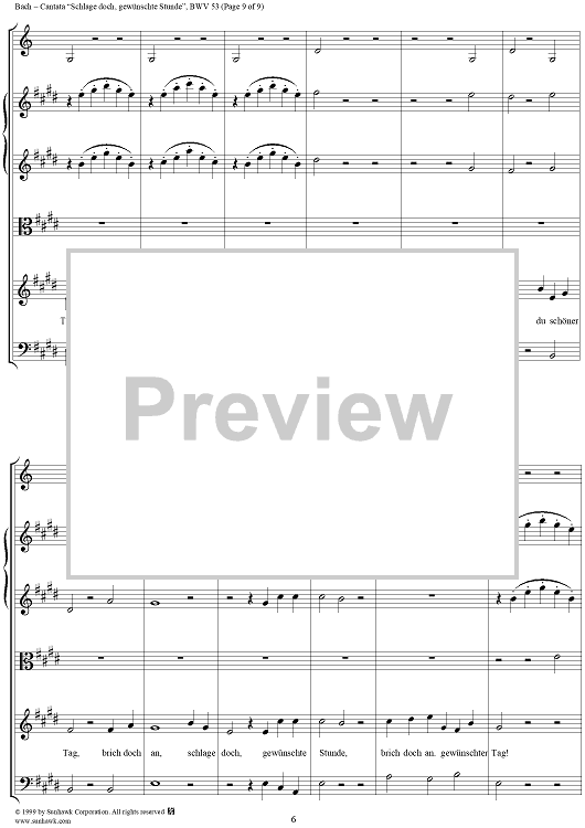 Digital Sheet Music for Schlage doch, gewünschte Stunde - Cantata No. 53 - BWV53 by Johann Sebastian Bach scored for Assorted Instruments; id:268071
