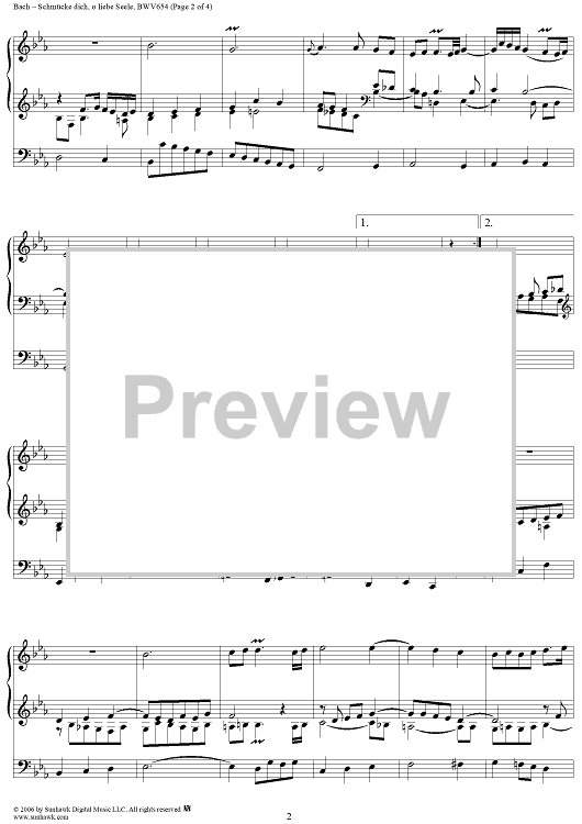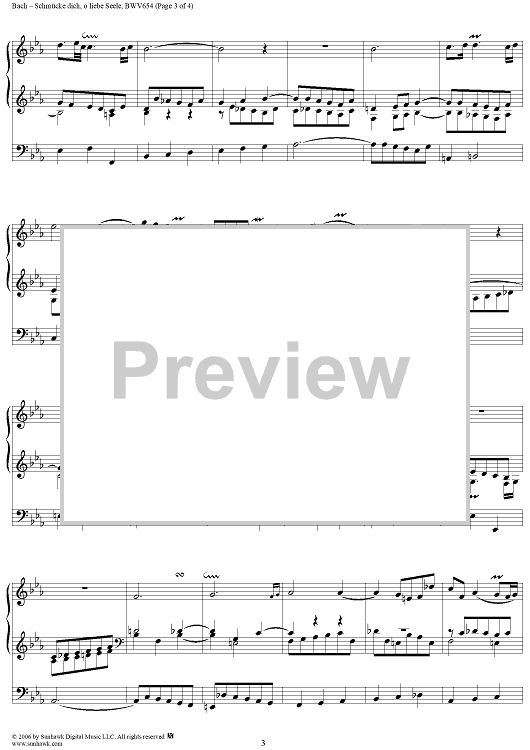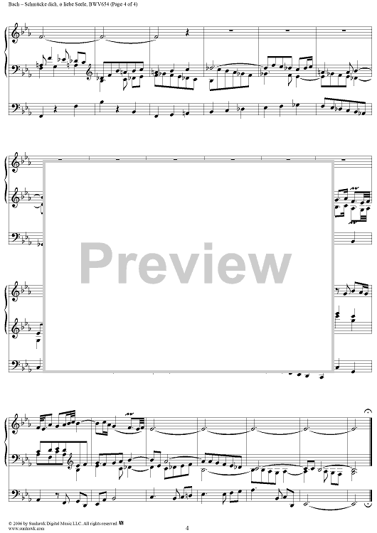 Digital Sheet Music for Schmücke dich, o liebe Seele, No. 4 from "18 Leipzig Chorale Preludes", BWV654 by Johann Sebastian Bach scored for Organ Solo; id:319018