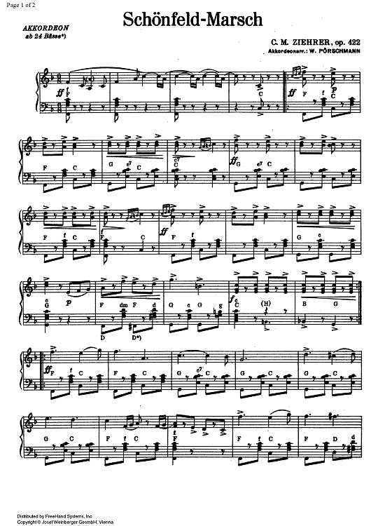 Digital Sheet Music for Schönfeld-Marsch Op.422 by , W. Pörschmann, Carl Michael Ziehrer scored for Accordion; id:337637