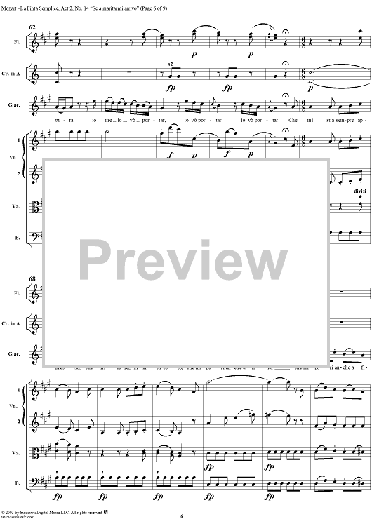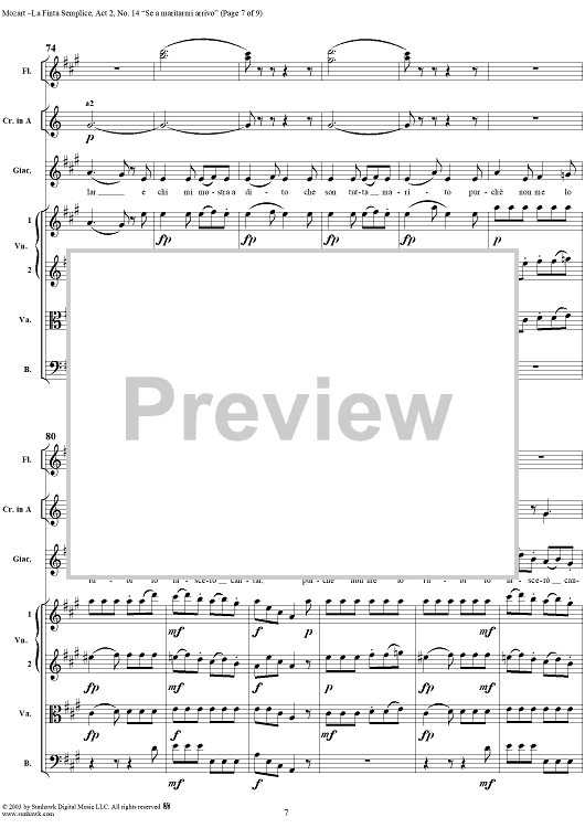 Digital Sheet Music for "Se a maritarmi arrivo", No. 14 from "La Finta Semplice", Act 2, K46a (K51) - Full Score by Wolfgang Amadeus Mozart scored for Voice and Orchestra; id:291816