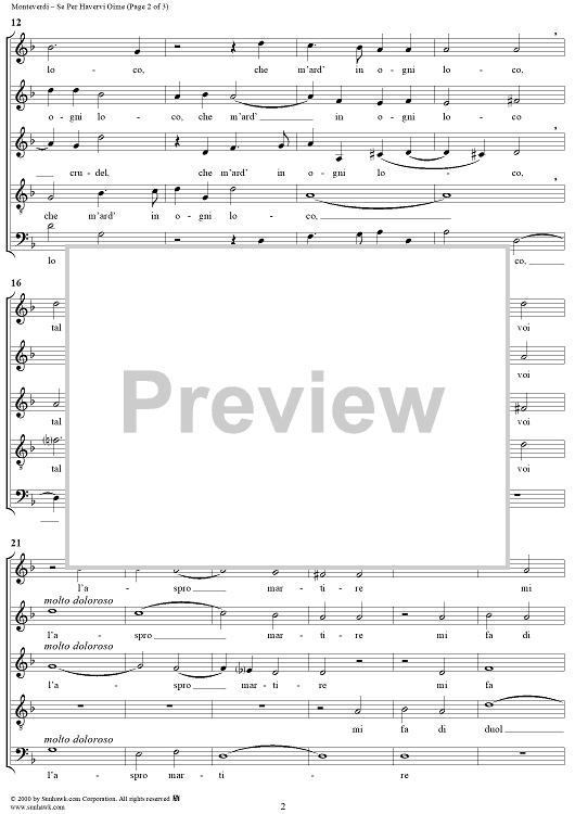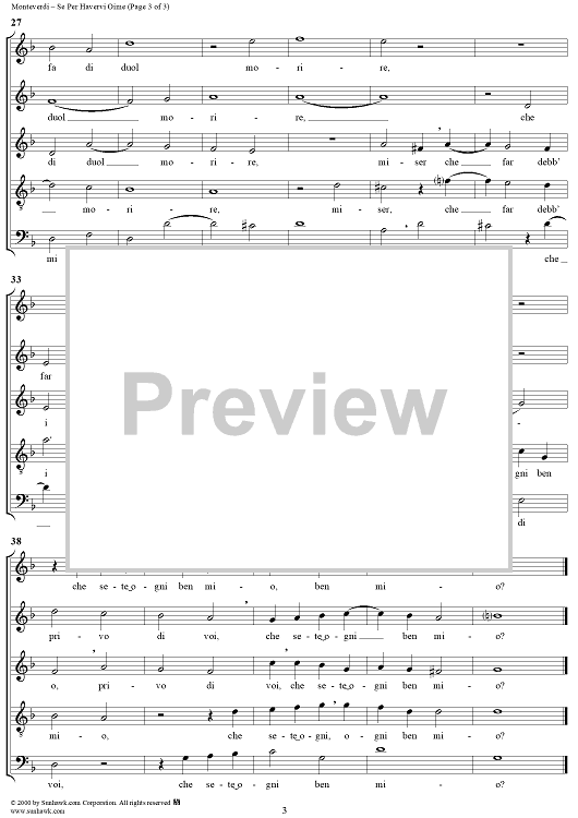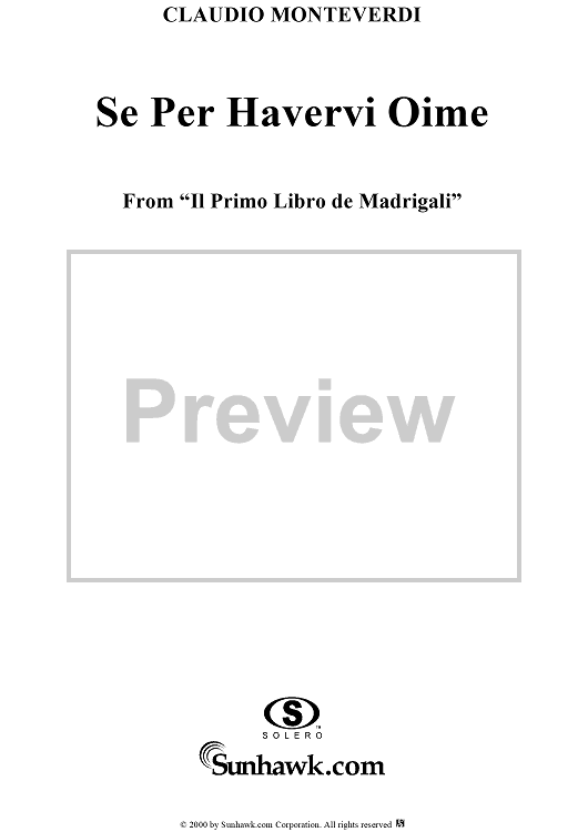 Digital Sheet Music for Se per havervi oimè - From "Il Primo Libro de Madrigali" - SV24 by Claudio Monteverdi scored for Four-part Mixed Chorus; id:253116