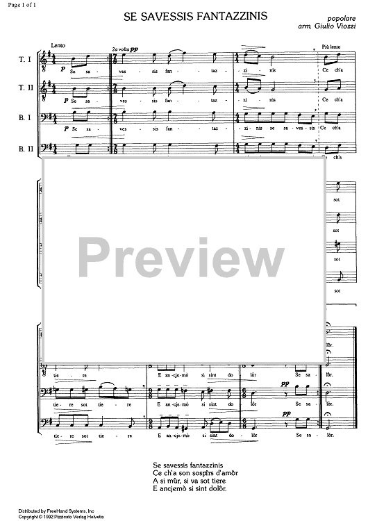 Digital Sheet Music for Se savessis fantazzinis by , Giulio Viozzi, Traditional scored for Male Choir; id:334496