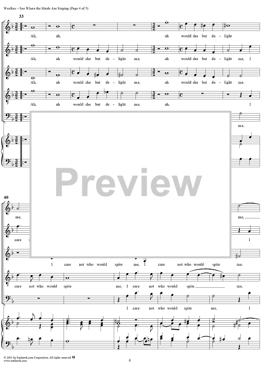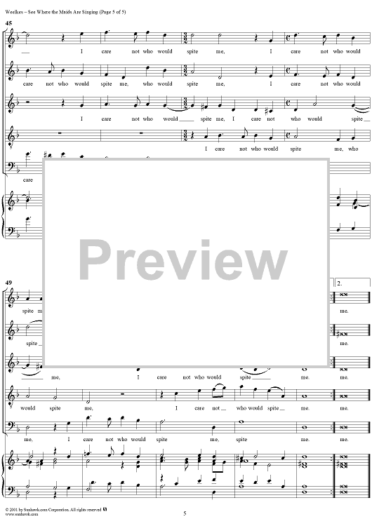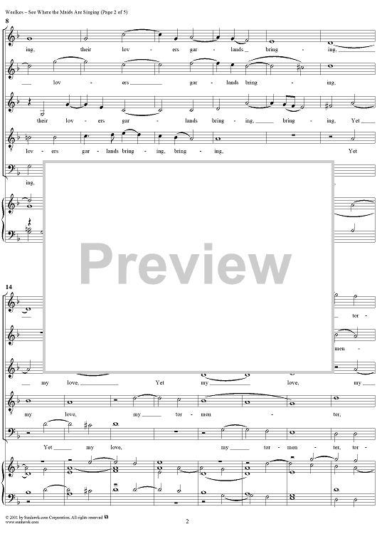 Digital Sheet Music for See Where the Maids Are Singing by Thomas Weelkes scored for Five-part Mixed Chorus; id:262253