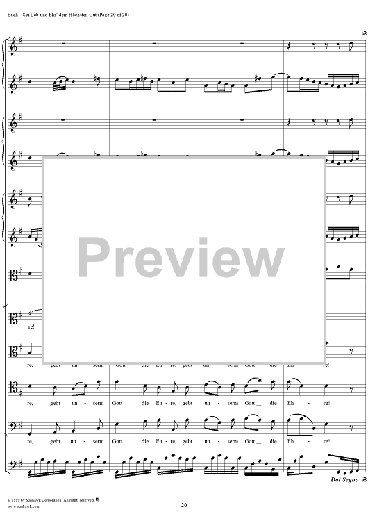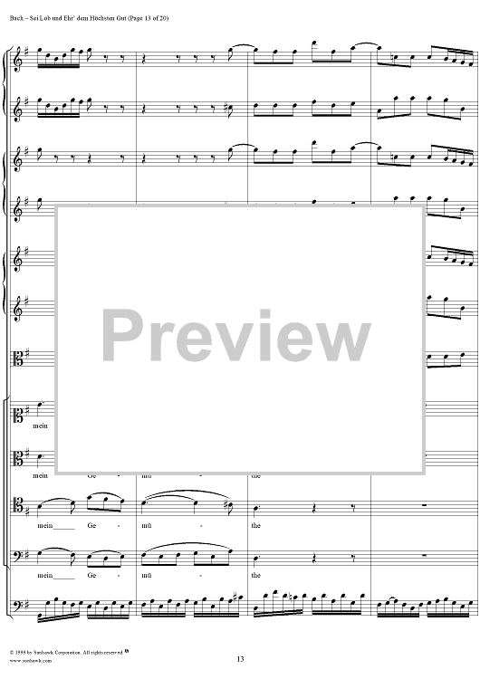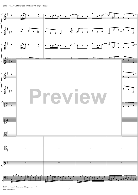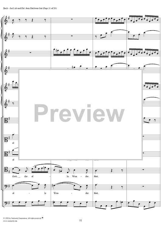 Digital Sheet Music for Sei Lob und Ehr' dem höchsten Gut, Movement 1, BWV117 by Johann Sebastian Bach scored for Full Score; id:265844