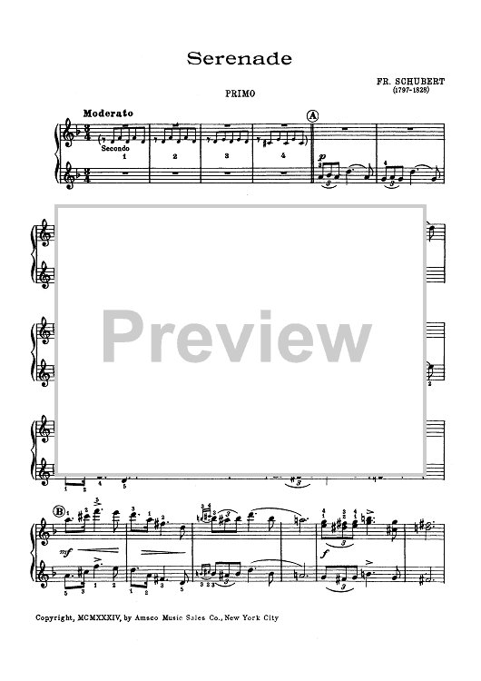 Digital Sheet Music for Serenade by Franz Schubert scored for 1 Piano, 4 Hands; id:460870