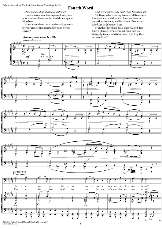 "Seven Last Words of Christ, 4th WORD" Sheet Music by Theodore Dubois