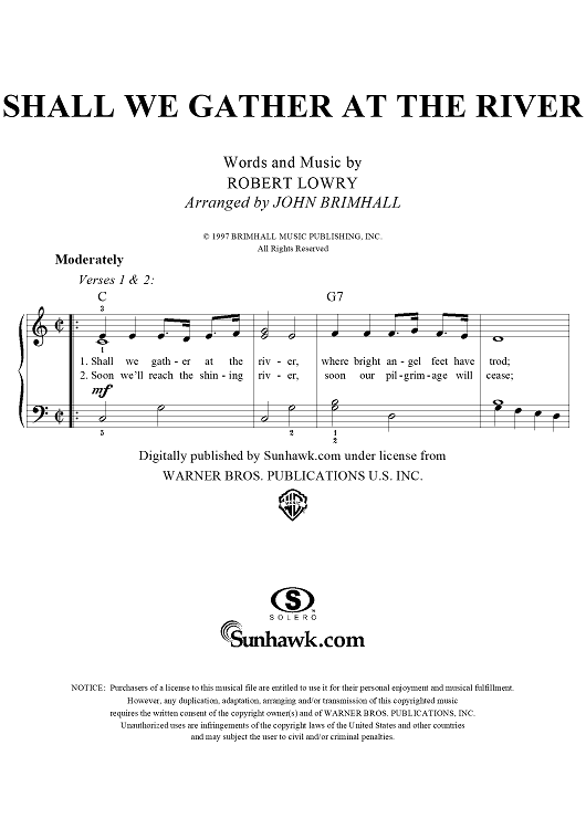Digital Sheet Music for Shall We Gather at the River by Robert Lowry, John Brimhall scored for Easy Piano/Vocal; id:250988