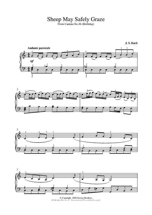 Digital Sheet Music for Sheep May Safely Graze by Johann Sebastian Bach scored for Piano; id:382694