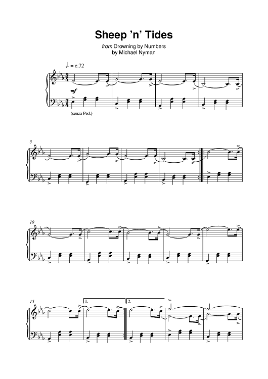 Digital Sheet Music for Sheep 'N' Tides by Michael Nyman scored for Piano; id:382571