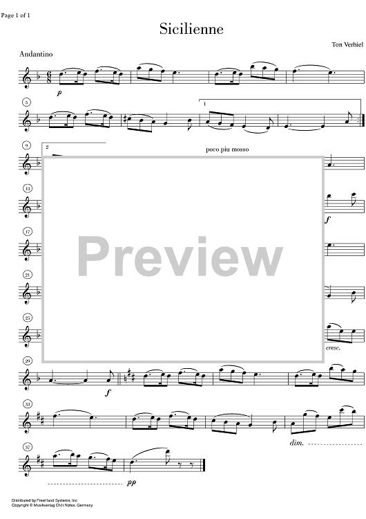 Digital Sheet Music for Sicilienne by Ton Verhiel scored for Saxophone; id:333706