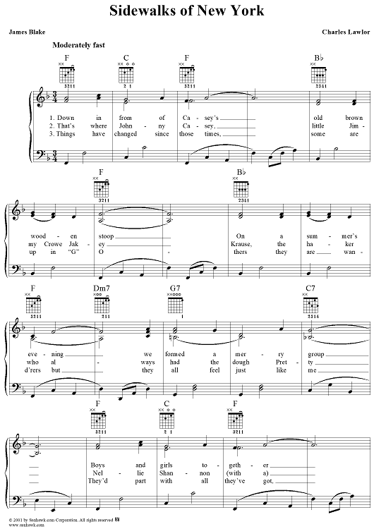 Digital Sheet Music for Sidewalks of New York by James W. Blake, Charles B. Lawlor scored for Piano/Vocal; id:250891