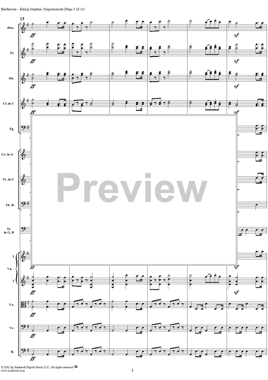 Digital Sheet Music for Siegesmarsch, No. 3 from "König Stephan", Op. 117 - Full Score by Ludwig van Beethoven scored for Orchestra; id:290859