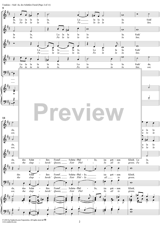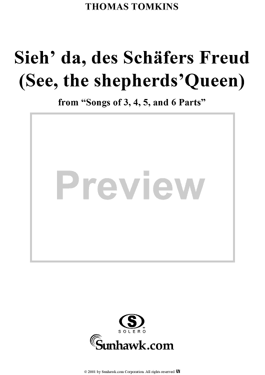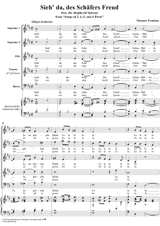 Digital Sheet Music for Sieh’ da, des Schäfers Freud by Thomas Tomkins scored for Four-part Mixed Chorus; id:260476