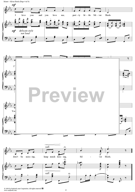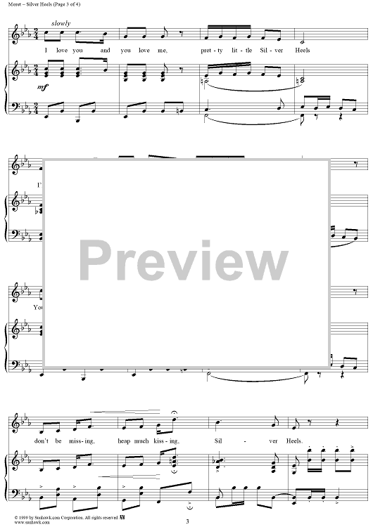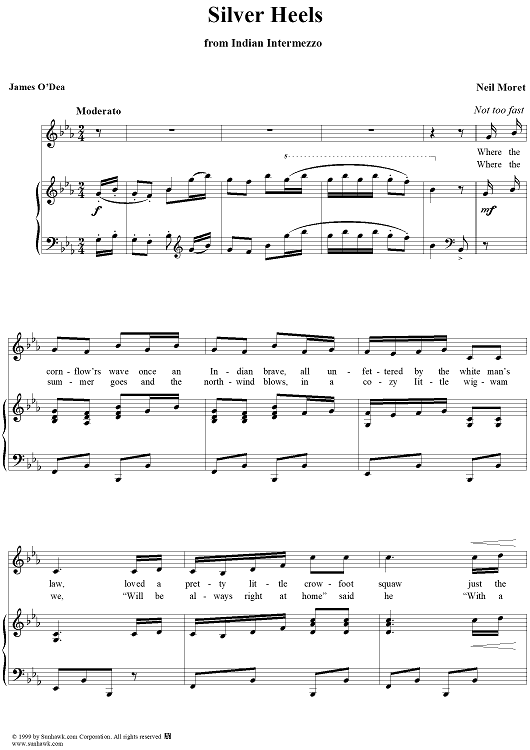 Digital Sheet Music for Silver Heels by Neil Moret, James O'Dea scored for Piano/Vocal; id:252600