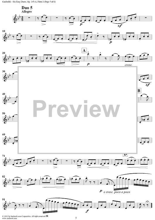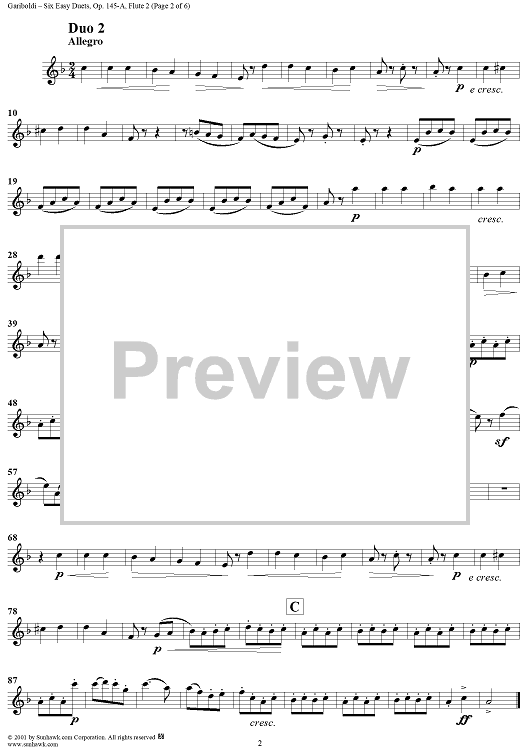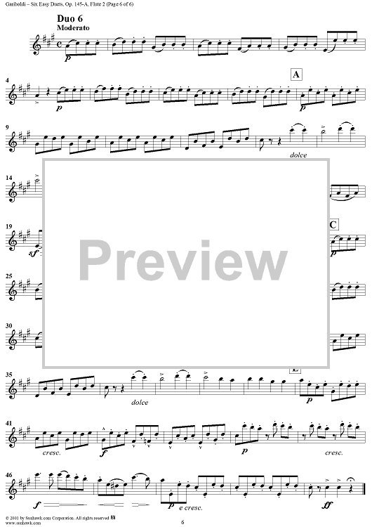 Digital Sheet Music for Six Easy Duets, Op. 145-A - Flute 2 by Giuseppe Gariboldi scored for Two Flutes; id:268336