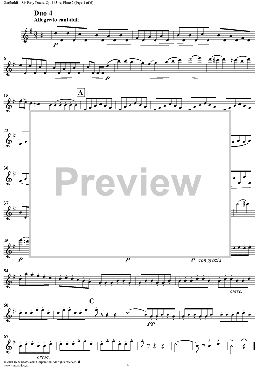 "Six Easy Duets, Op. 145-A - Flute 2" Sheet Music by Giuseppe Gariboldi