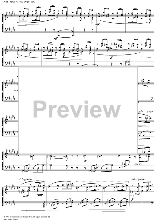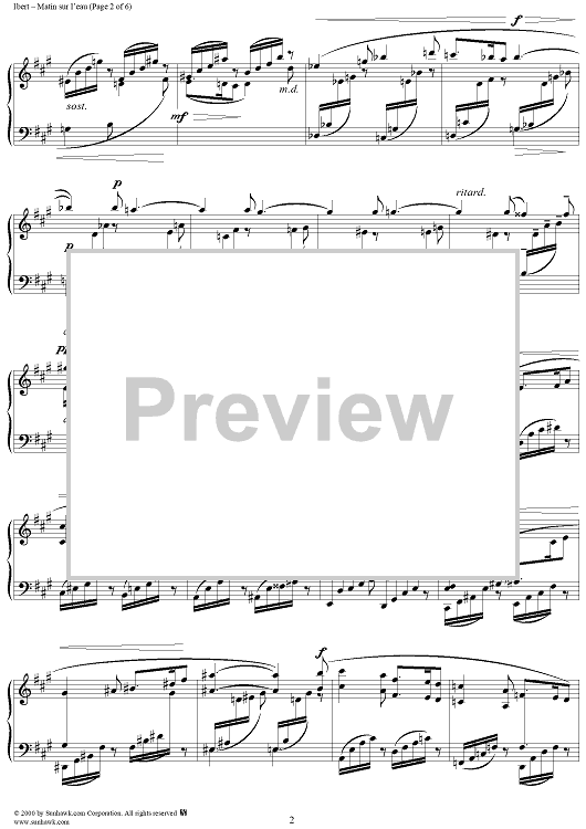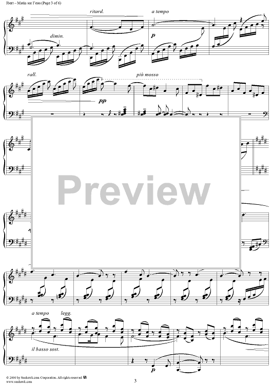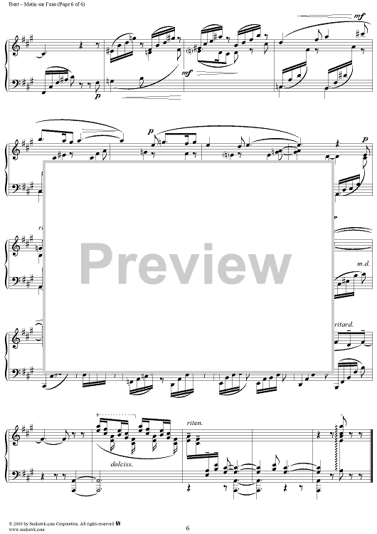 Digital Sheet Music for Six Pieces for Harp - Matin Sur L'eau by Jacques Ibert scored for Harp Solo; id:265503