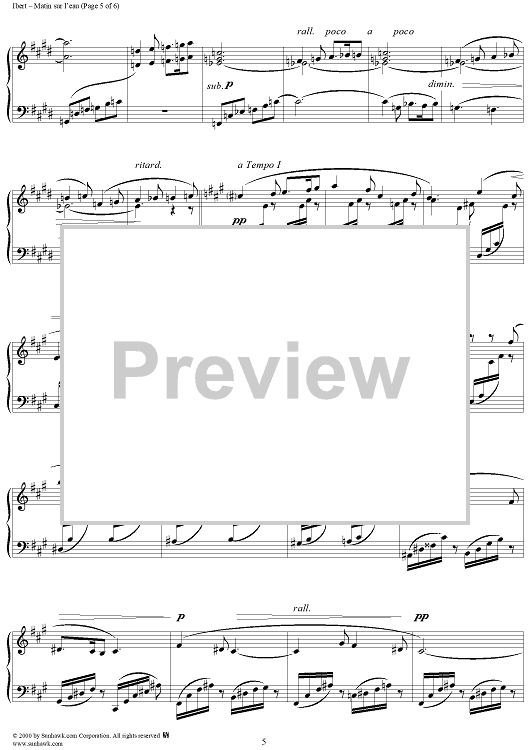 "Six Pieces for Harp - Matin Sur L'eau" Sheet Music by Jacques Ibert