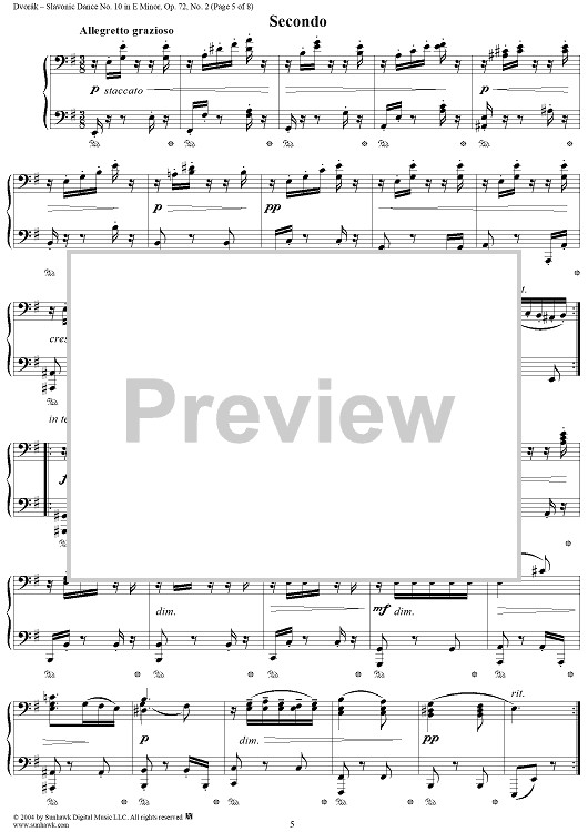 "Slavonic Dance No. 10 in E Minor, Op. 72, No. 2" Sheet Music by Antonín Dvorák