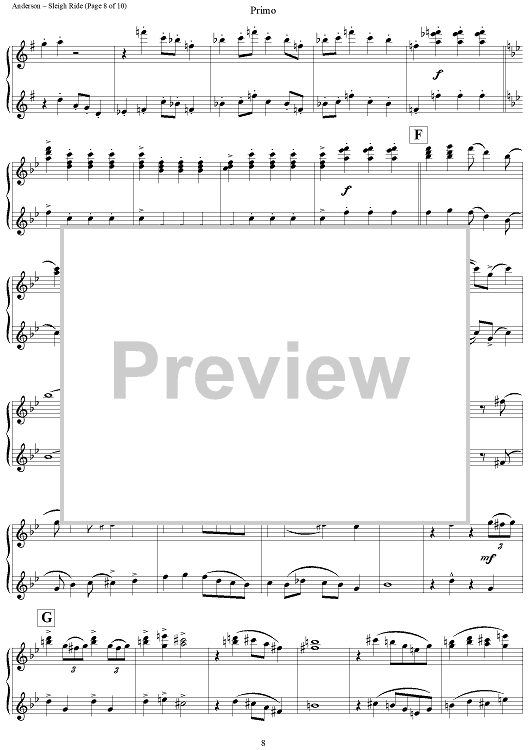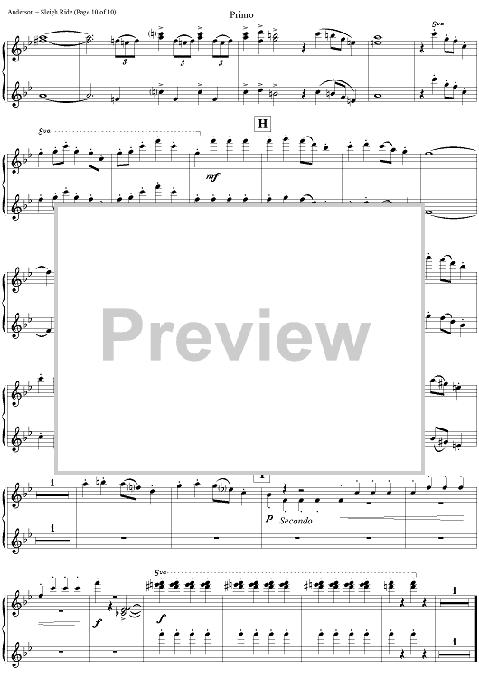 By arranging this famous Leroy Anderson piece as a duet, the sound is full and rich, while also being very playable for two late intermediate level artists. The Secondo part will be basically accompanimental, but with great counter-melodies, rhythms, and accents. The Primo part will carry the melody, sometimes with the melody doubled in the hands, and sometimes with chords. A Federation Festivals 2016-2020 selection. A Federation Festivals 2020-2024 selection.