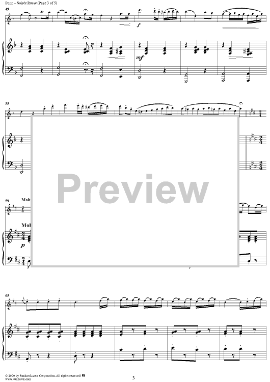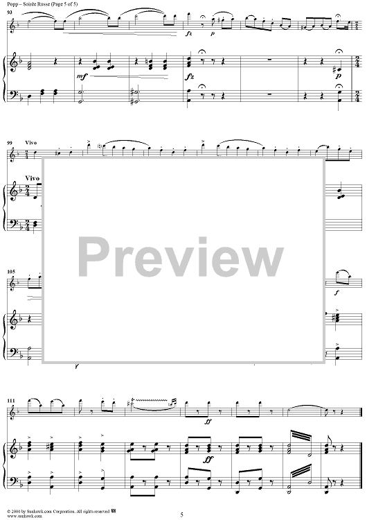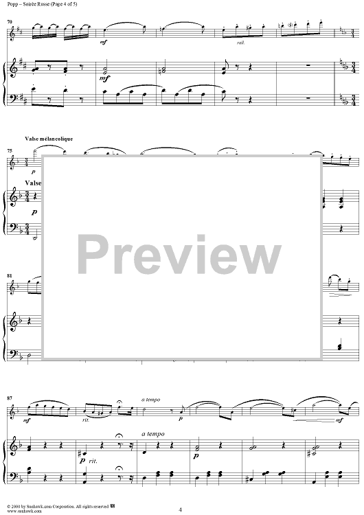 Digital Sheet Music for Soirée Russe (National Melodies) by Wilhelm Popp scored for Flute/Piano; id:235263
