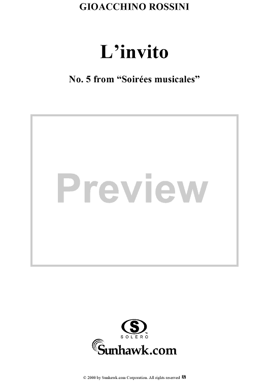 Digital Sheet Music for Soirées musicales, No. 5: L'invito by Gioachino Rossini scored for Voice/Piano; id:255713