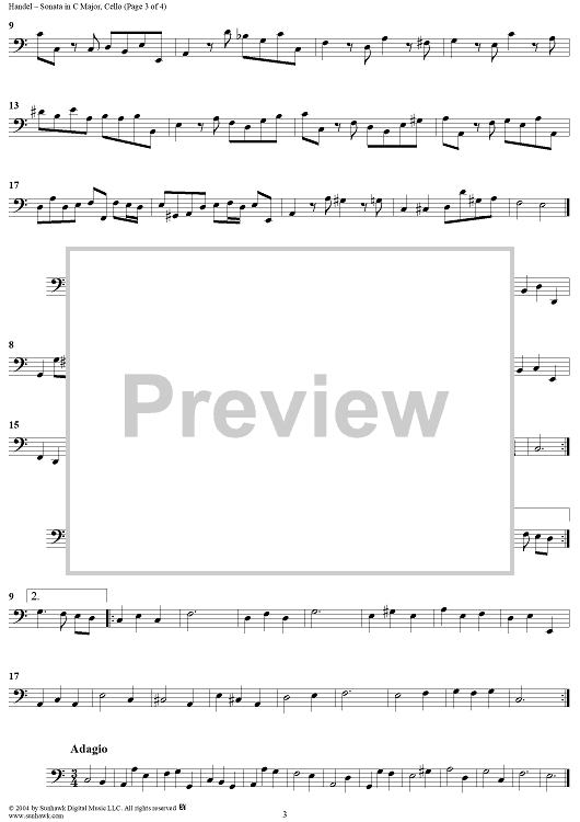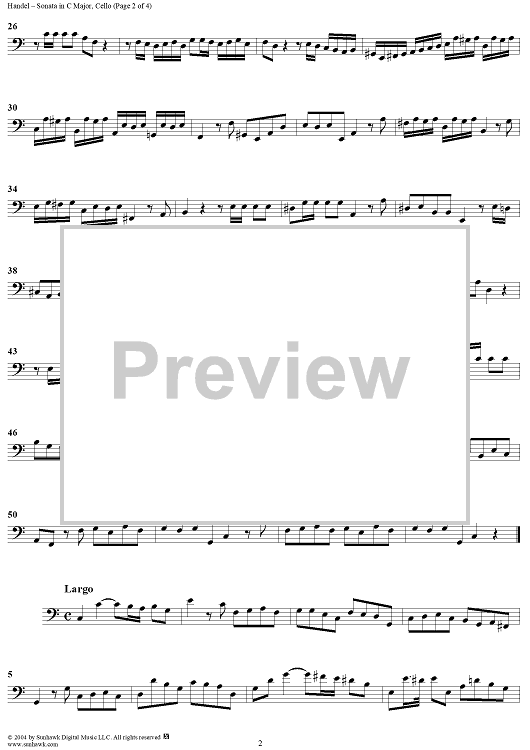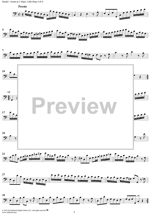 "Sonata in C Major - Cello" Sheet Music by George Frideric Handel