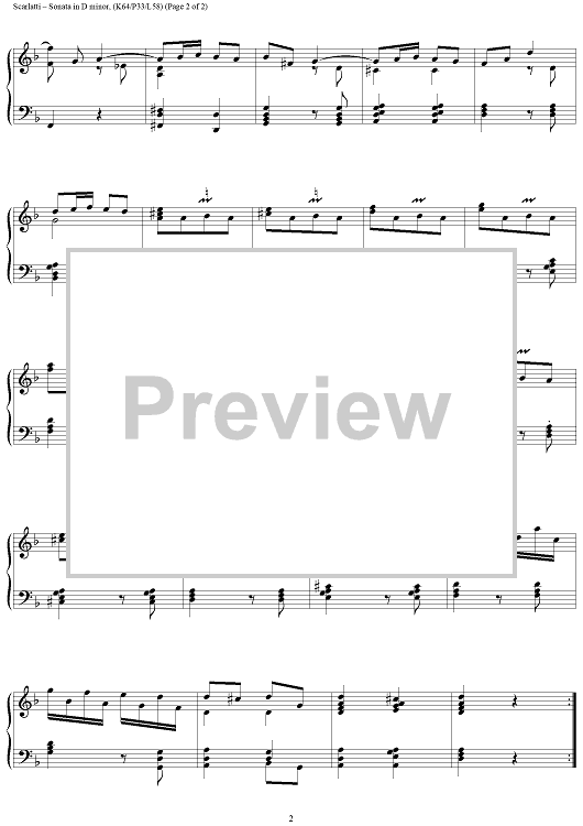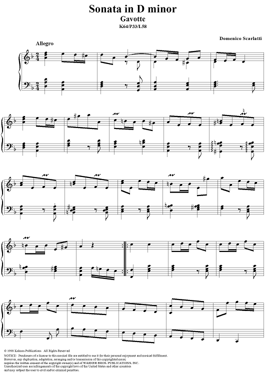 Digital Sheet Music for Sonata in D minor, K. 64 (Gavotte) by Domenico Scarlatti scored for Piano Solo; id:110892