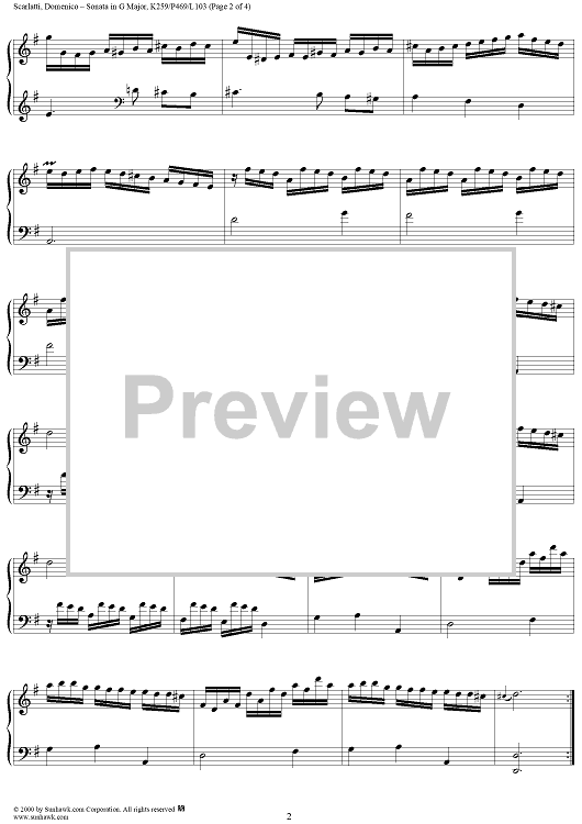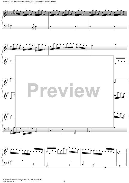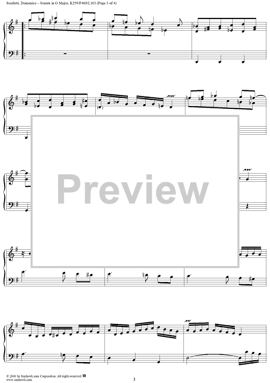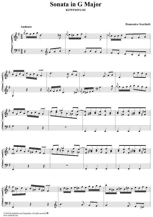 Digital Sheet Music for Sonata in G major - K259/P469/L103 by Domenico Scarlatti scored for Piano Solo; id:257299