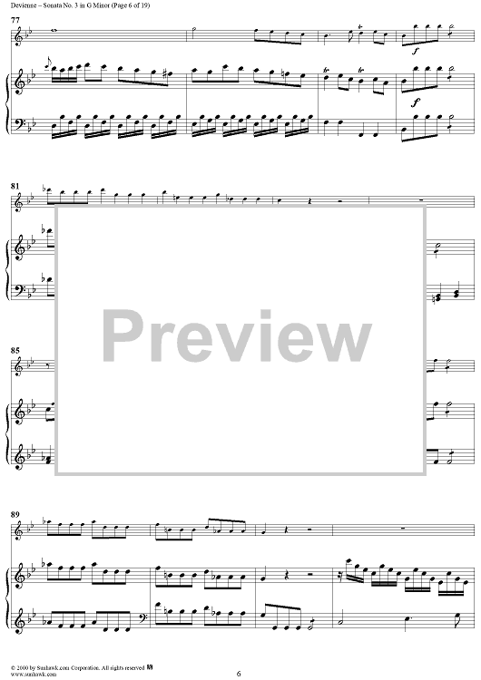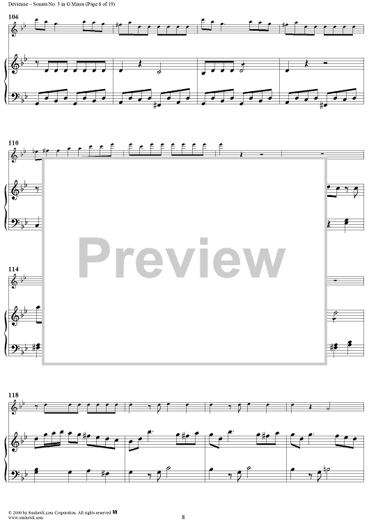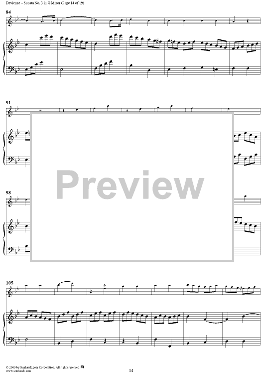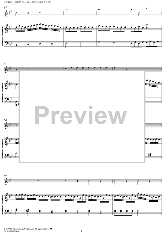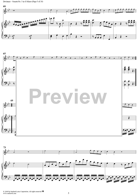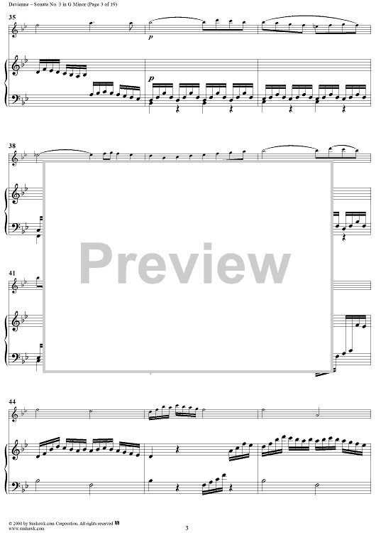 Digital Sheet Music for Sonata in G minor op. 23, no. 3 - Piano by François Devienne scored for Flute/Piano; id:220765
