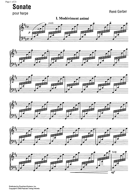 Digital Sheet Music for Sonate by , René Gerber scored for Harp Solo; id:338528