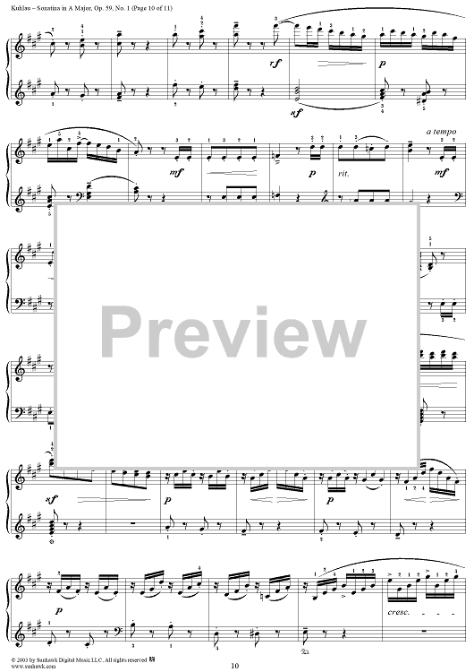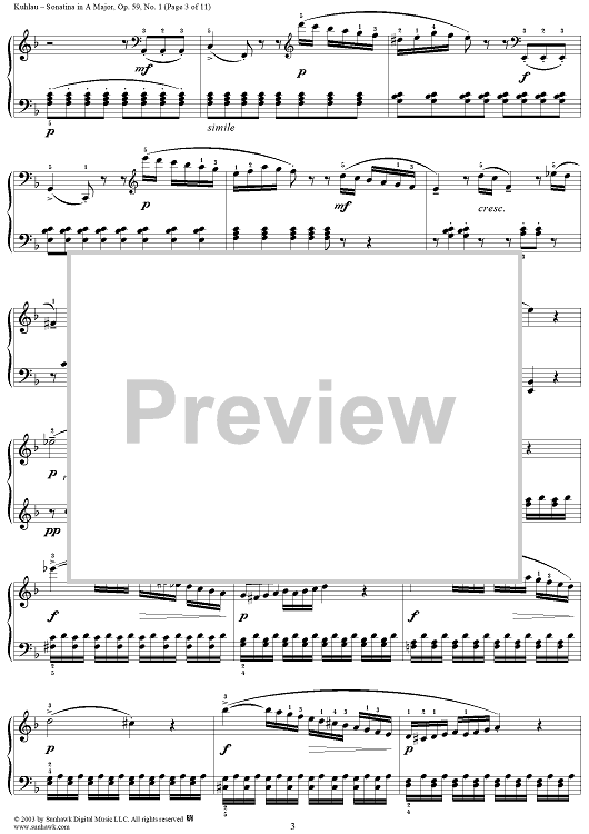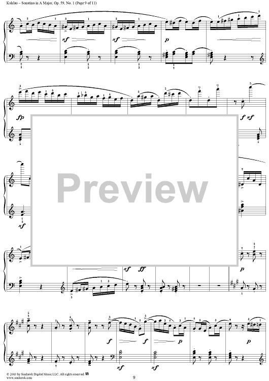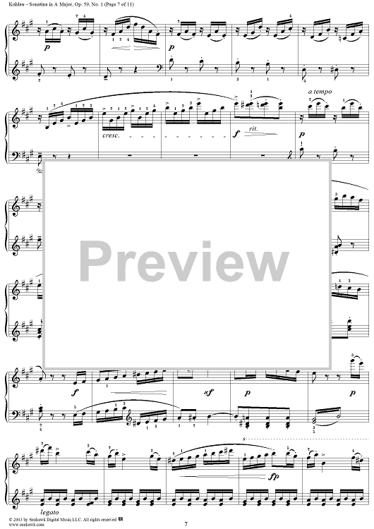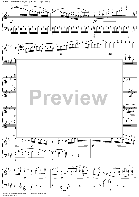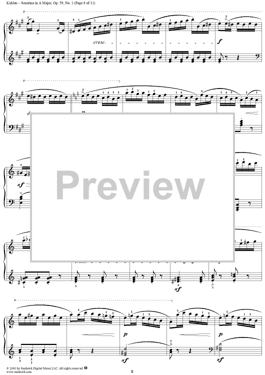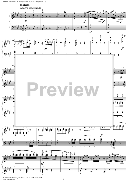 Digital Sheet Music for Sonatina in A Major, Op. 59, No. 1 by Friedrich Kuhlau scored for Piano Solo; id:294533