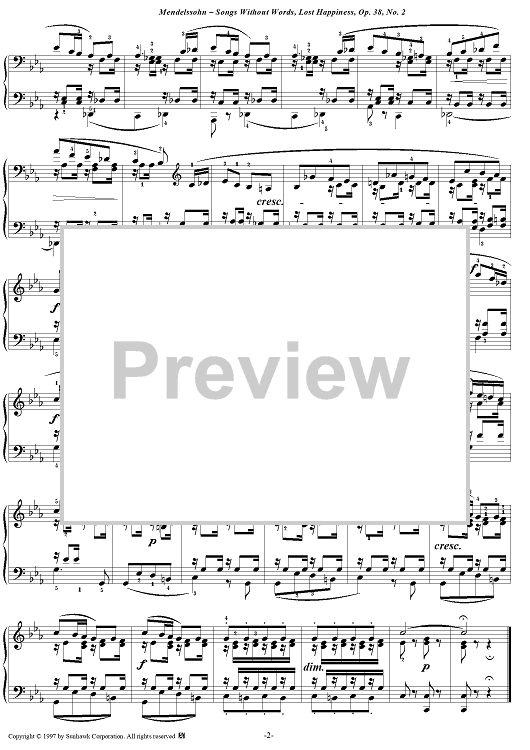 Digital Sheet Music for Songs Without Words (Book III), op. 38, no. 2: Lost Happiness by Felix Mendelssohn scored for Piano Solo; id:94676