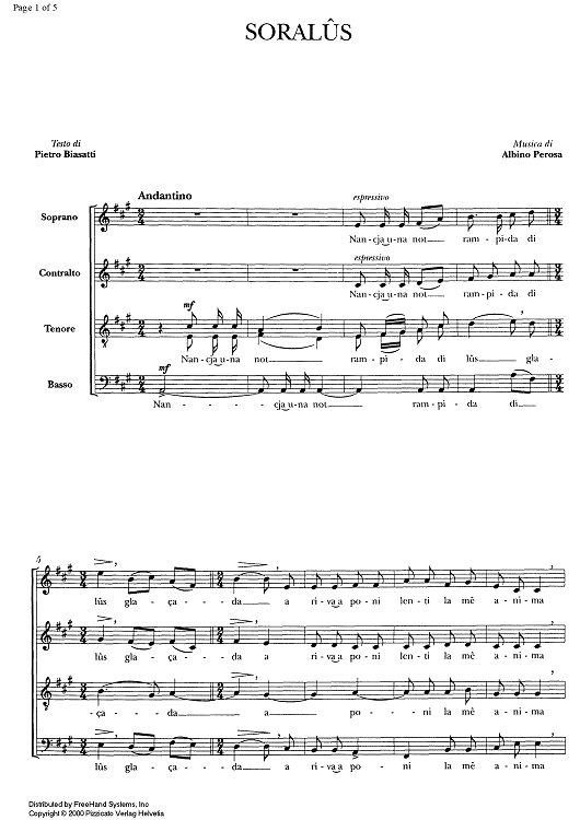Digital Sheet Music for Soralûs by , Albino Perosa scored for SATB Choir; id:334547