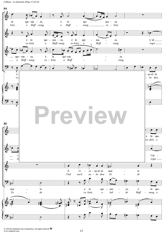 Digital Sheet Music for Speranza, La -Die Hoffnung by Antonio Caldara scored for Assorted Instruments; id:273267