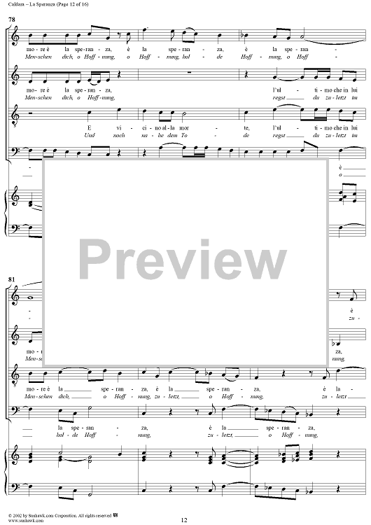 "Speranza, La -Die Hoffnung" Sheet Music by Antonio Caldara