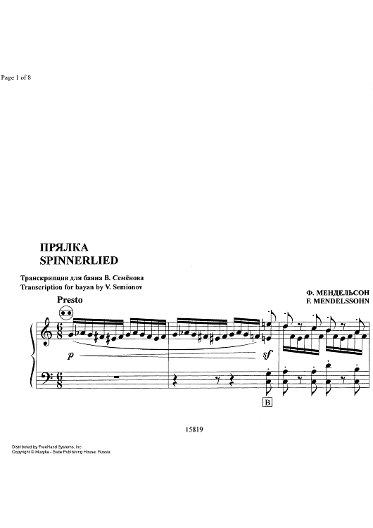 Digital Sheet Music for Spinnerlied by , Felix Mendelssohn, Viacheslav Semionov scored for Accordion; id:337084