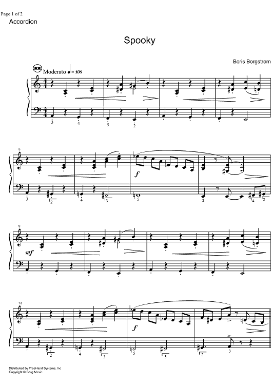 Digital Sheet Music for Spooky by , Boris Borgstrom scored for Accordion; id:325766
