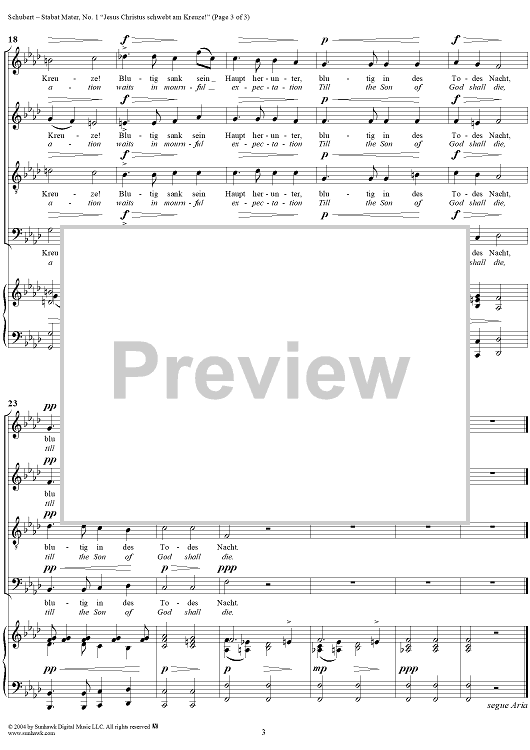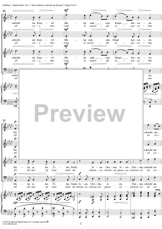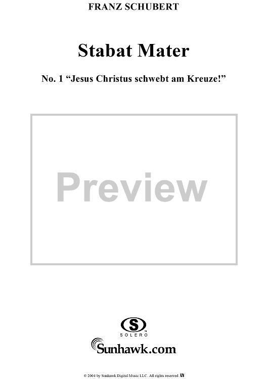 Digital Sheet Music for Stabat Mater, D383, No. 1: "Jesus Christus schwebt am Kreuze!" by Franz Schubert scored for Four-part Mixed Chorus/Piano; id:304458