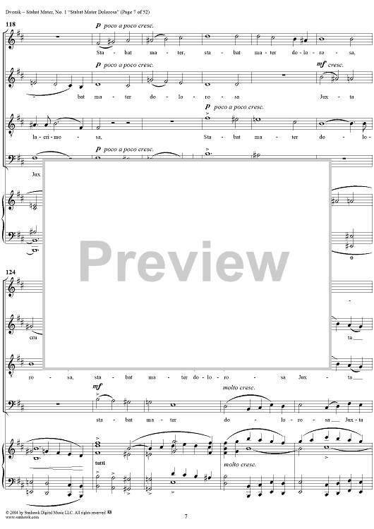 Digital Sheet Music for Stabat Mater, Op. 58: No. 1, Stabat Mater Dolorosa by Antonín Dvorák scored for Four-part Mixed Chorus/Piano; id:304728
