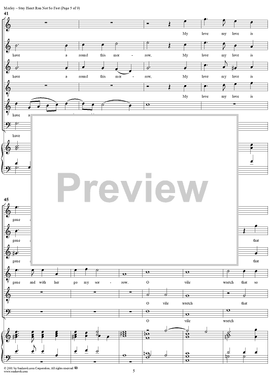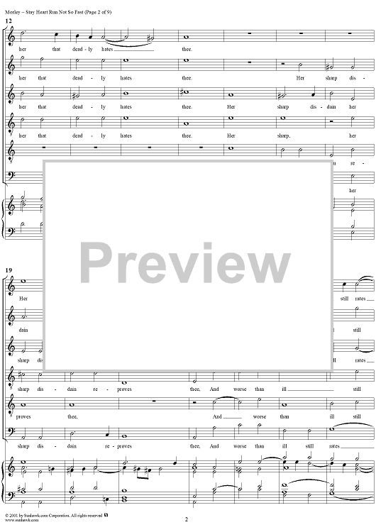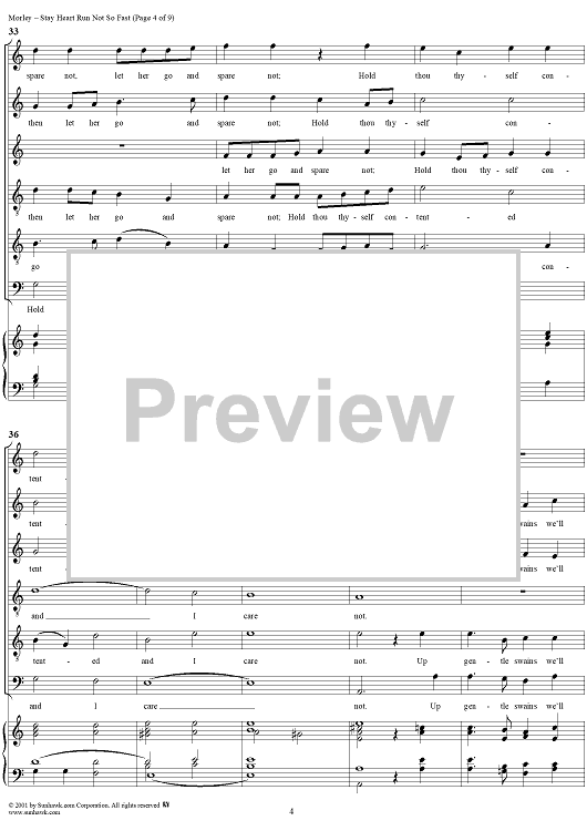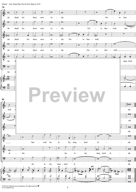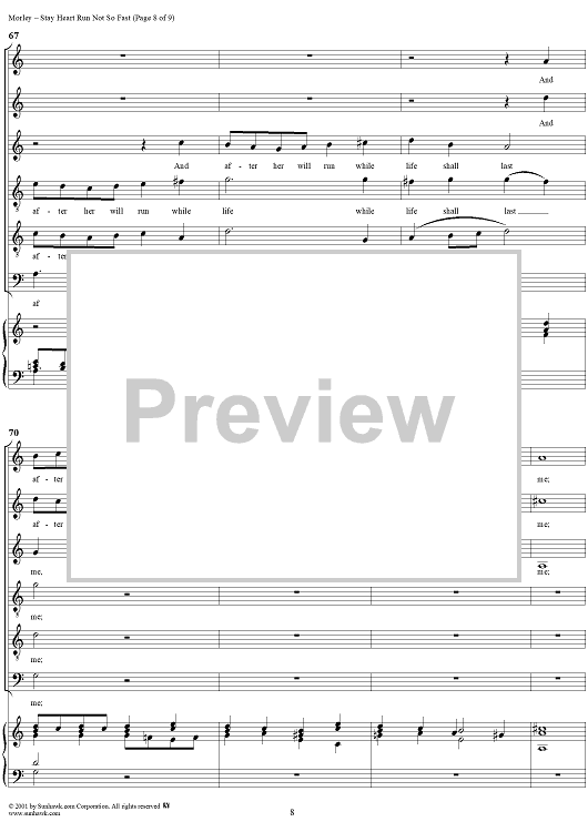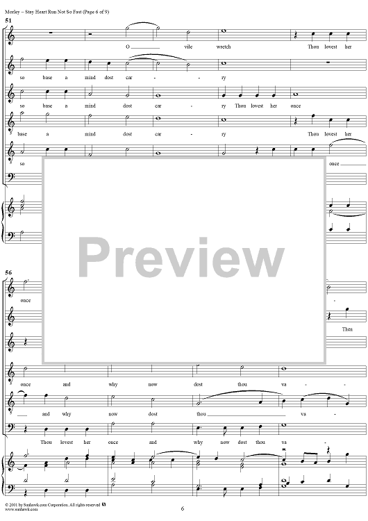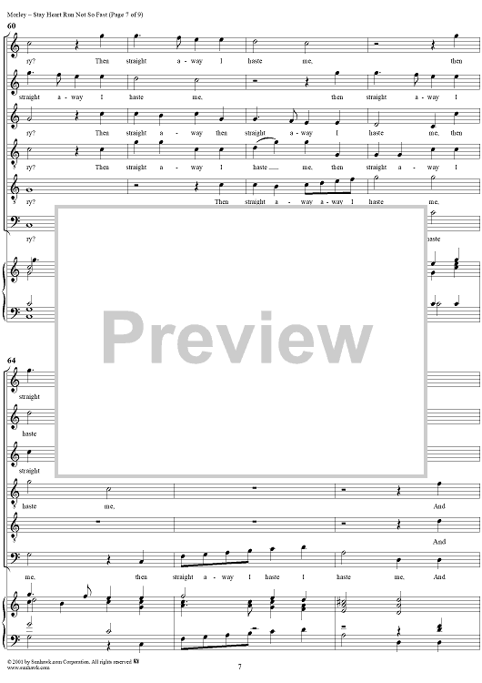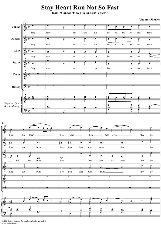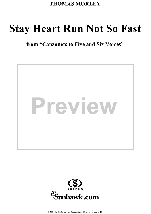 Digital Sheet Music for Stay Heart Run Not So Fast by Thomas Morley scored for Six-part Mixed Chorus; id:260302
