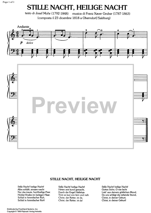 Digital Sheet Music for Stille Nacht by Franz Xaver Gruber scored for Piano/Vocal; id:329154