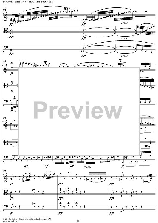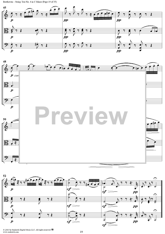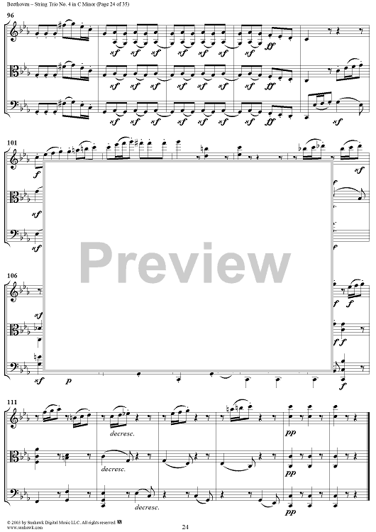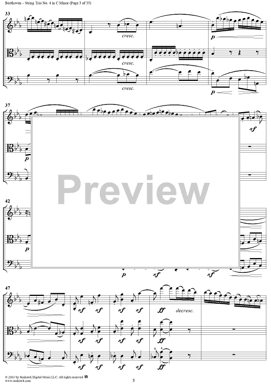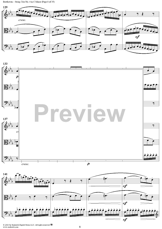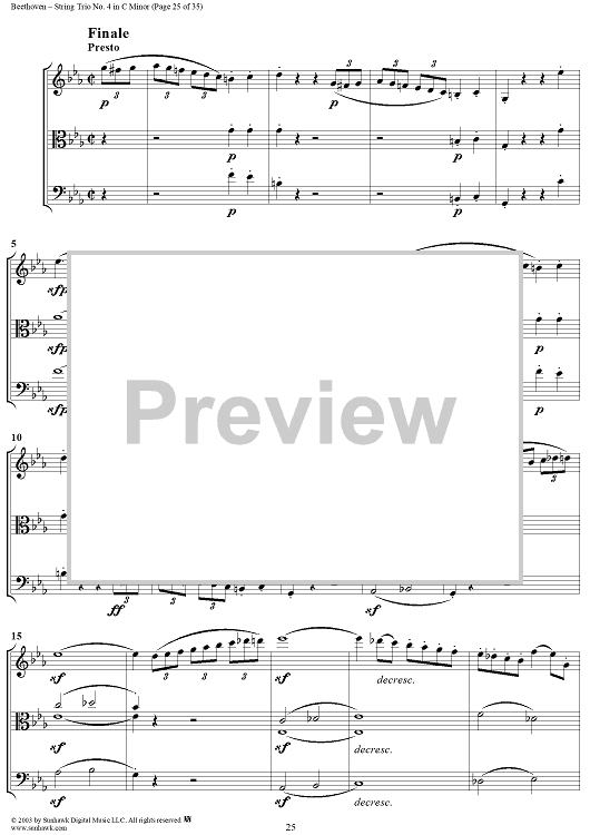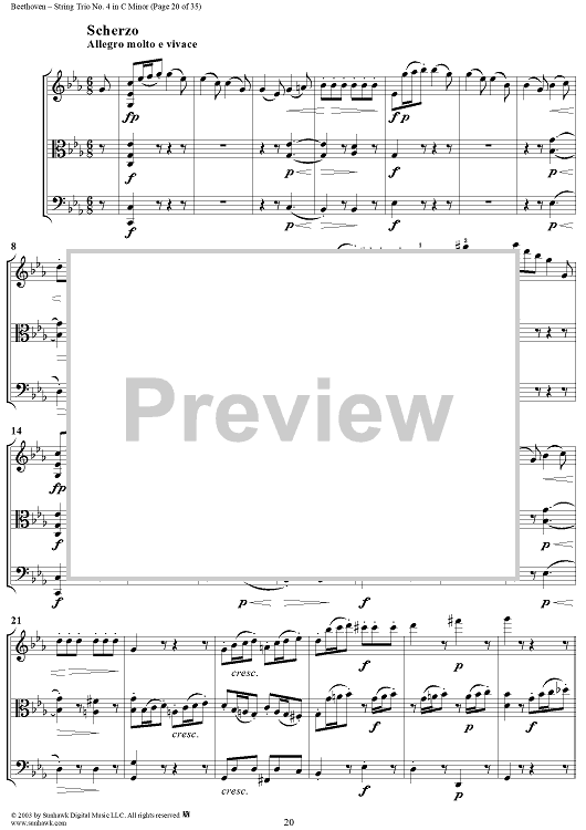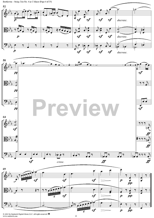 Digital Sheet Music for String Trio No. 4 in C Minor Op. 9, No. 3 - Score by Ludwig van Beethoven scored for String Trio; id:275281