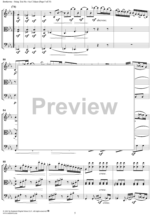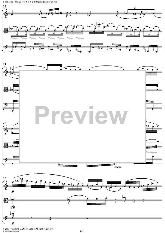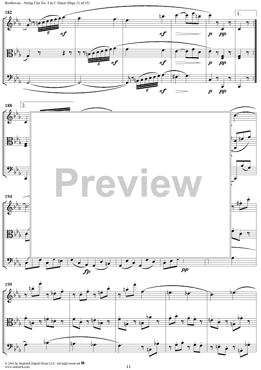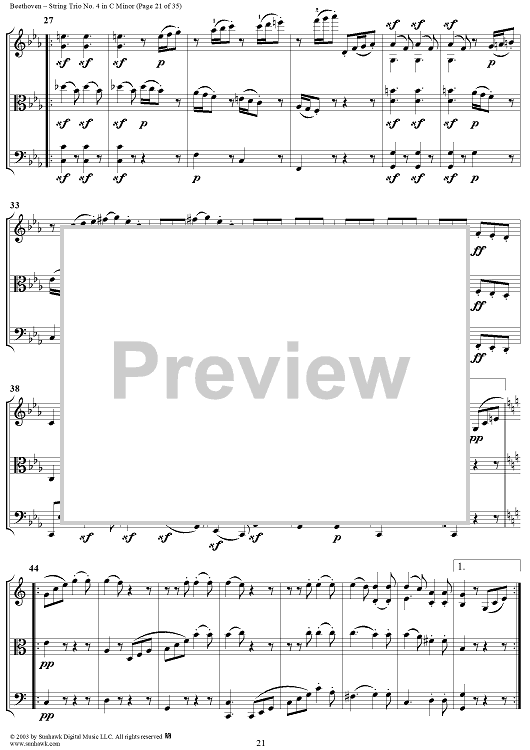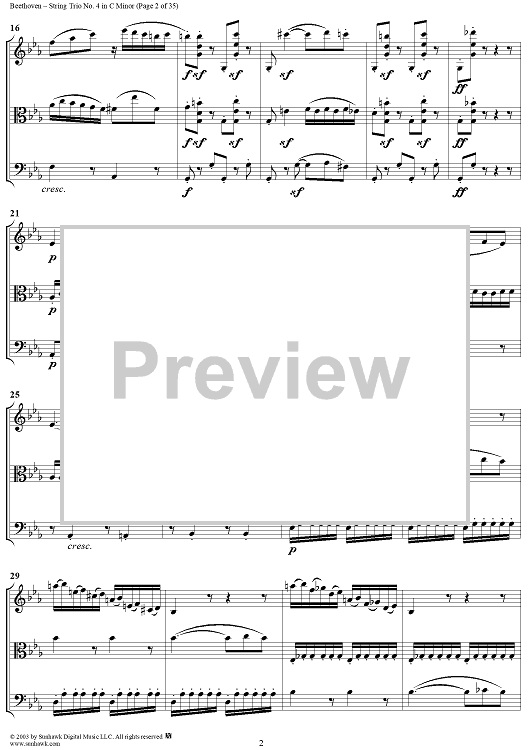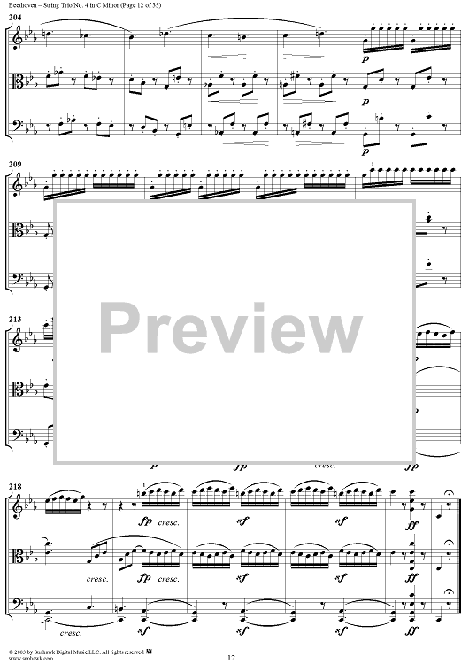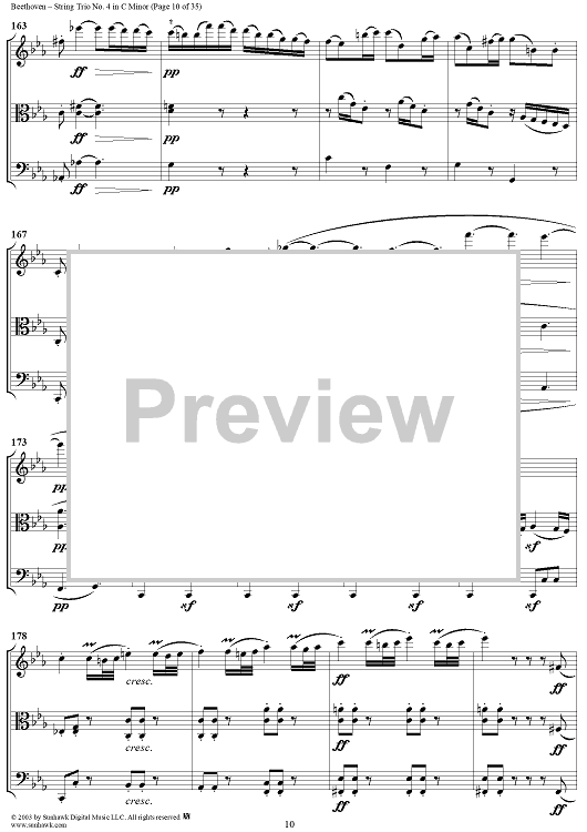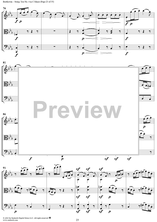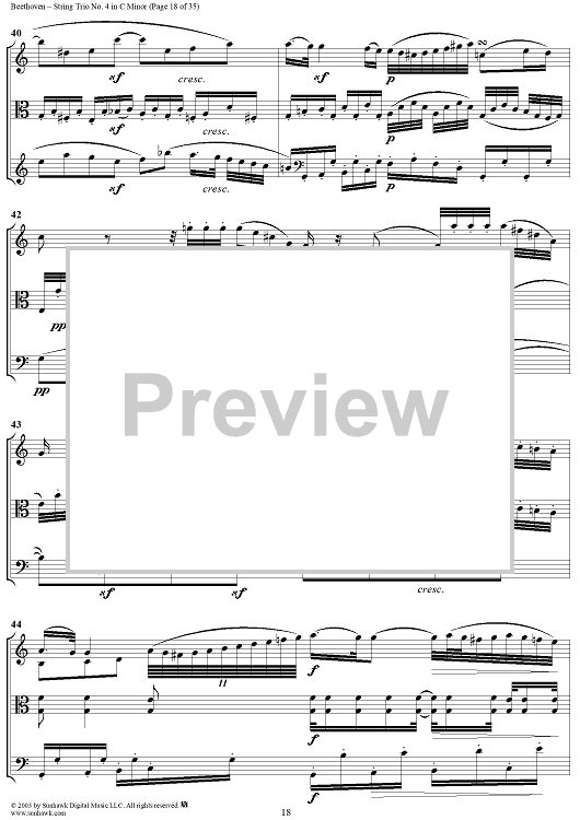 Digital Sheet Music for String Trio No. 4 in C Minor Op. 9, No. 3 - Score by Ludwig van Beethoven scored for String Trio; id:275281