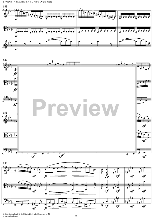 "String Trio No. 4 in C Minor Op. 9, No. 3 - Score" Sheet Music by Ludwig van Beethoven