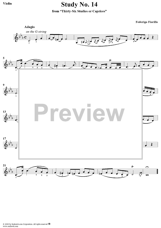 Digital Sheet Music for Study No. 14 by Federigo Fiorillo scored for Violin Studies; id:191644
