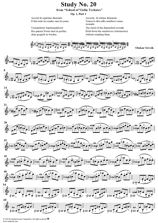 "Study No. 20" Sheet Music by Otakar Sevcik
